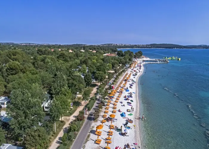 Camping Bi Village is gelegen in het zuiden van het schiereiland Istrië, vlakbij de stad Pula. Je zit er direct aan een heerlijk zandstrand met een schitterend uitzicht op de Brijuni eilanden. Het sfeervolle plaatsje Fazana is op loopafstand en met de auto ben je zo in Rovinj of Porec.