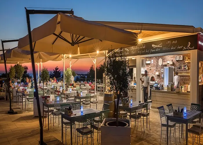 Net zoals bij alle Valamar campings is er hier keuze genoeg over waar je wat kunt eten of drinken. Er zijn 4 verschillende restaurants met elk hun eigen specialiteiten (Italiaans/vis/pizza's) en er is een afhaalpunt voor de snelle hap. Ook kun je in diverse barretjes genieten van een heerlijke cocktail terwijl de zon onder gaat. Op het centrale plein vind je een supermarkt, een bakker, een vis- en een fruitkraam, een souvenirwinkel en een surfshop. En in de zomer worden er diverse Oktoberfestachtige "Biergarten" avonden met livemuziek georganiseerd.